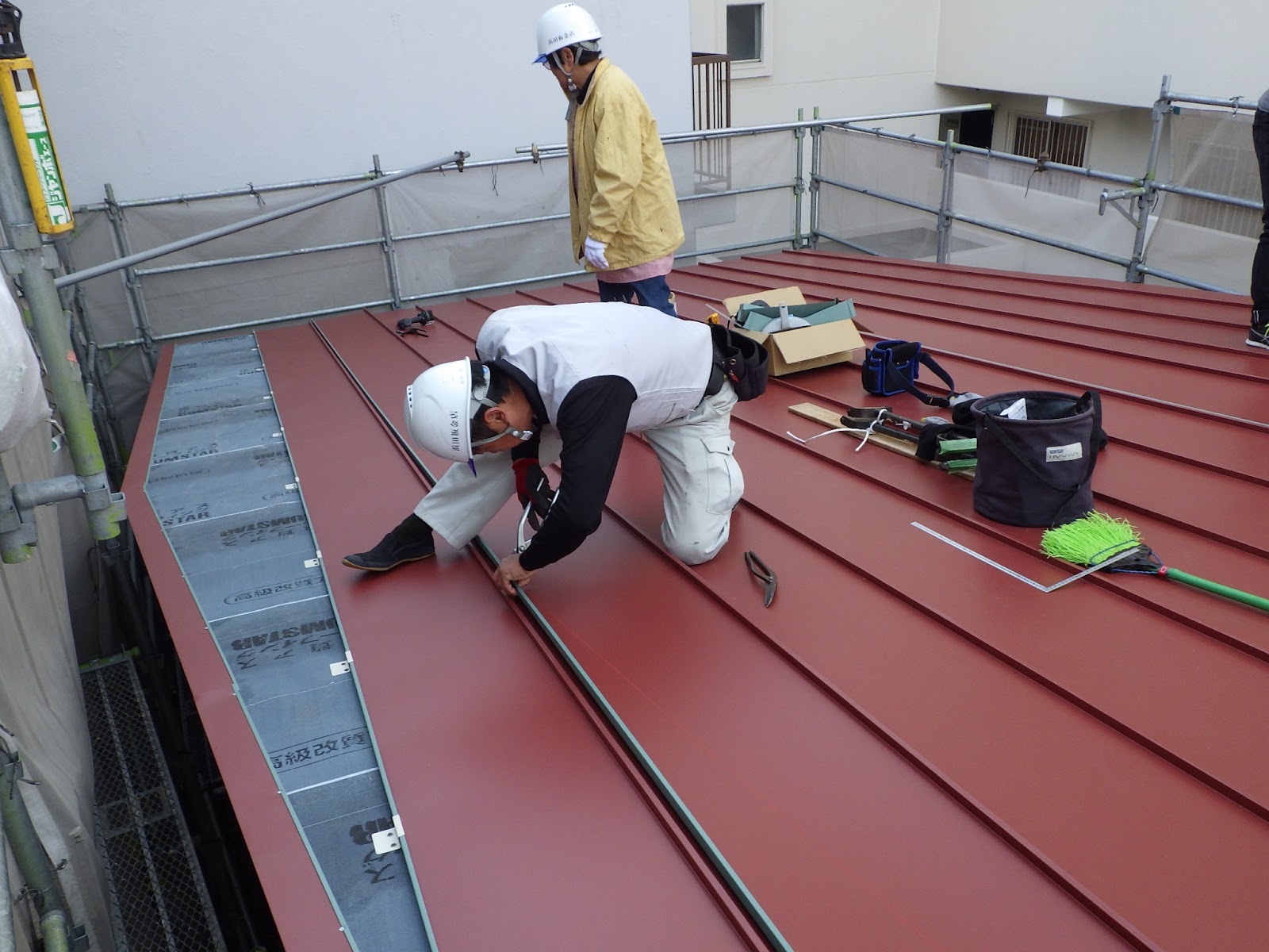 おじいちゃん、おとうさん、子どもと3世代がそろっての家族工事!素晴らしい。そしてこの板金ですが最近ではガルバリウム鋼板といってサビなどの劣化に強い材質になっており、なんとこの屋根...マツダZOOMZOOMスタジアムと同じものだそうです。ビックリ!