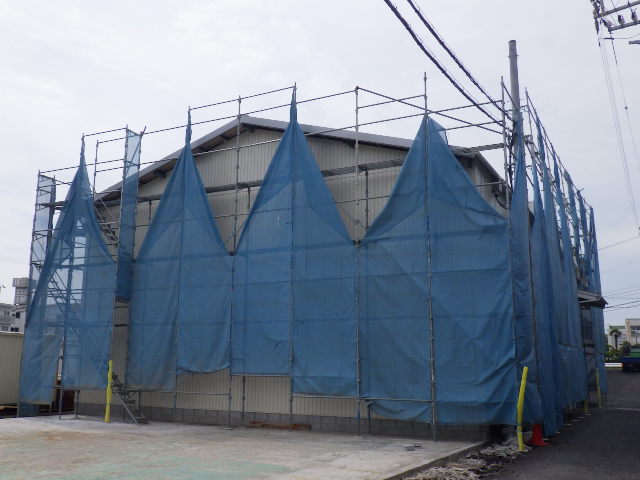 ひとつ気がかりだったのは、倉庫の改修で足場を組んでいる事。