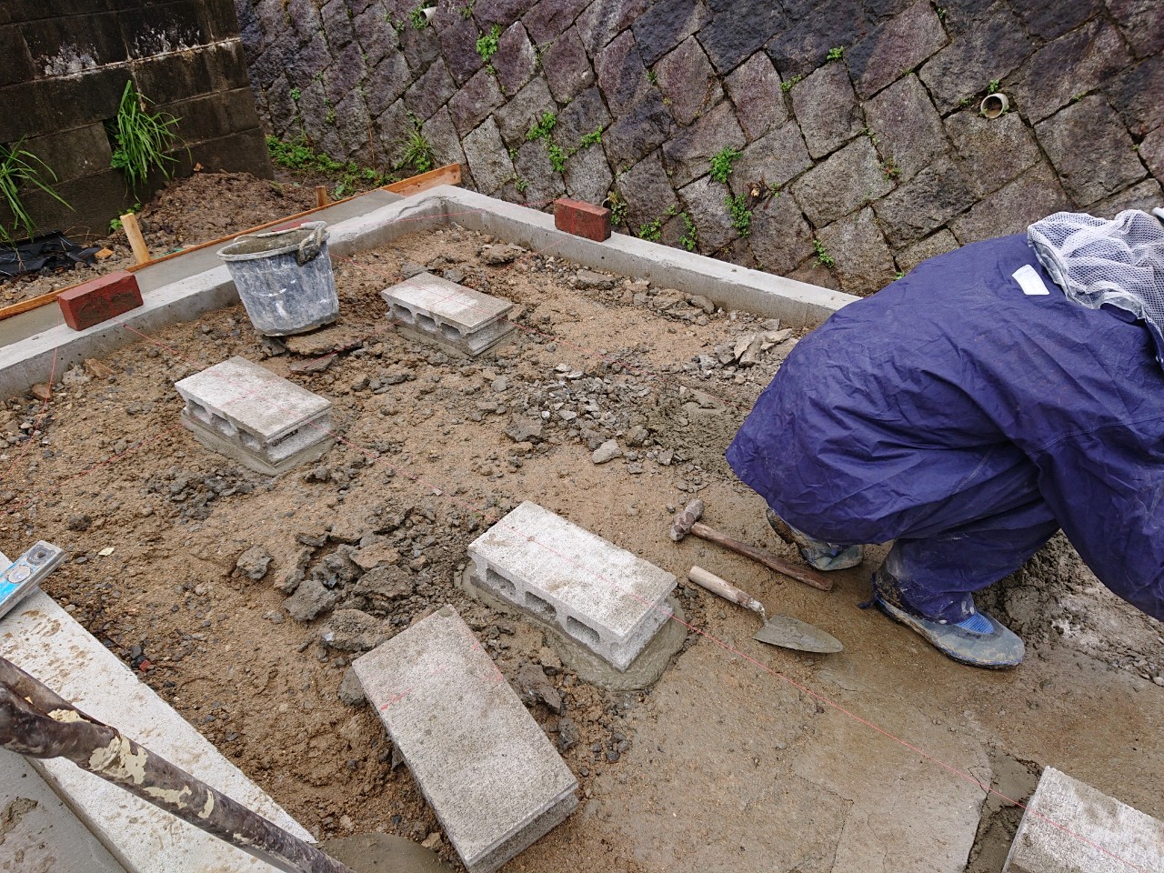 コンクリート打設(こちらは2個目の物置の基礎ですね)