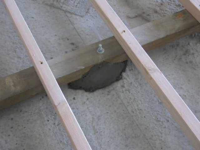 アンカー打込み→大引き転がし→根太組→クサビ飼いモルタル→