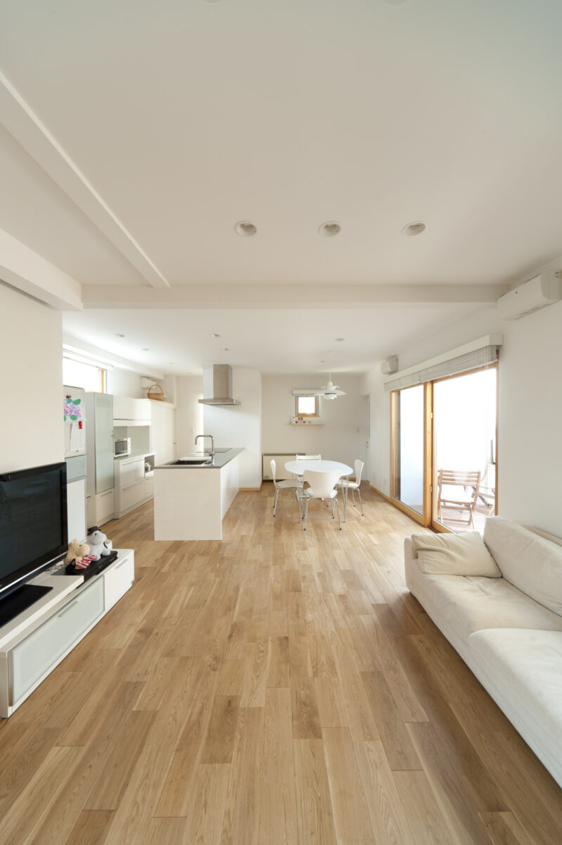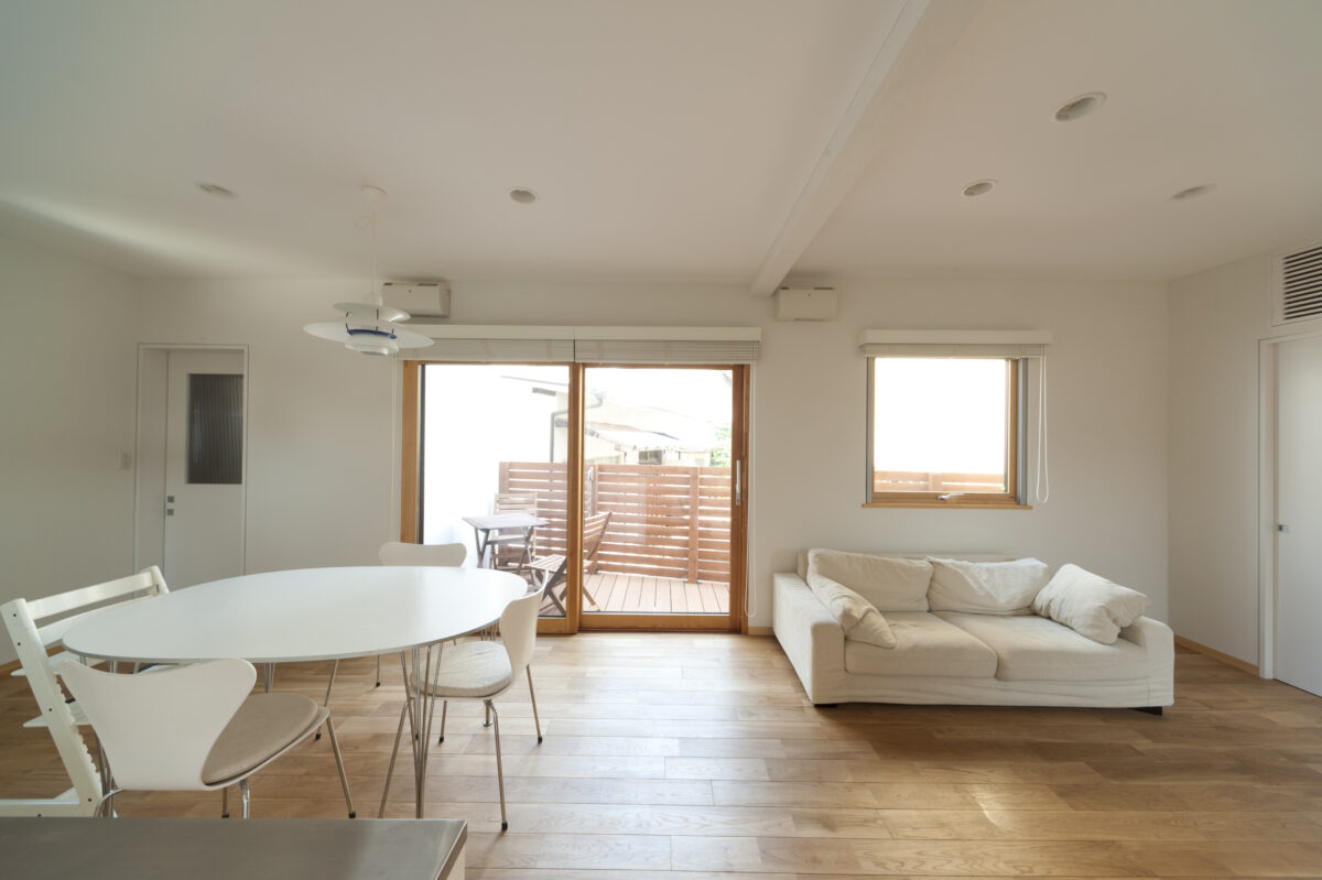 室内は木肌の色味と白を基調で統一されたシンプルナチュラルな空間が広がっています。