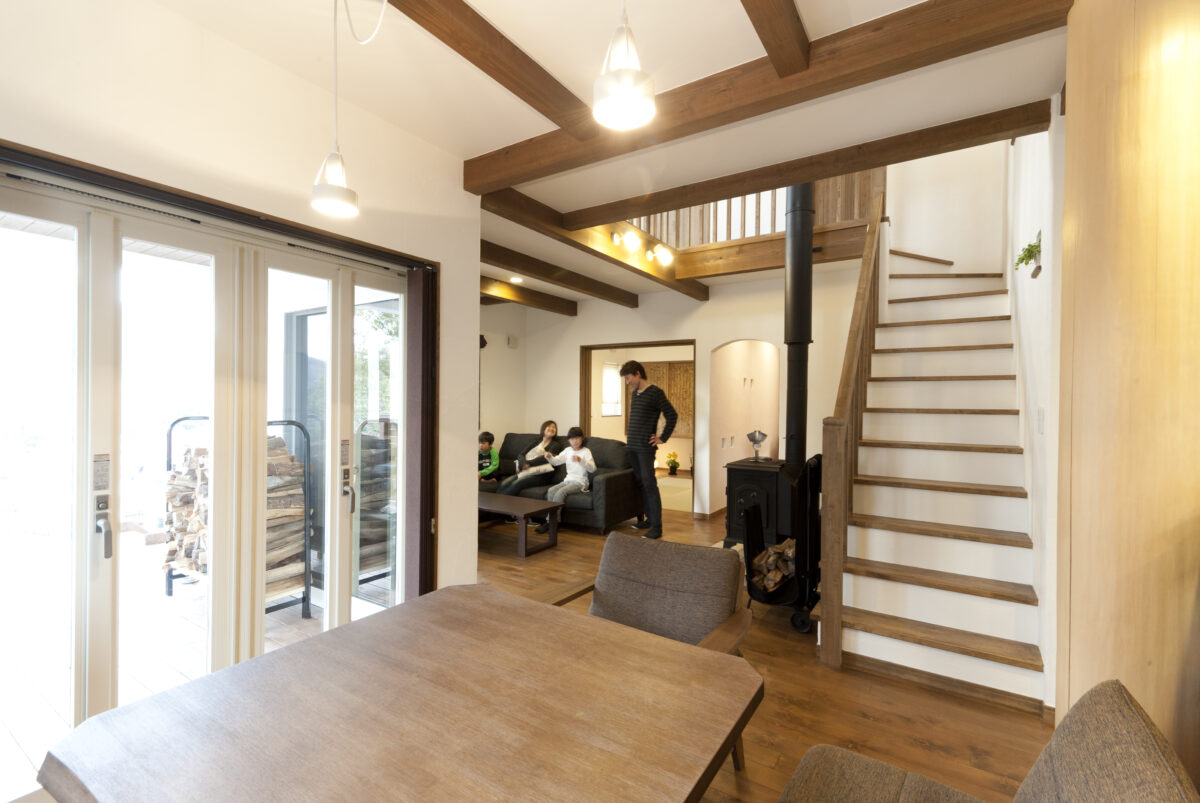 家の中心にご主人の強い要望で薪ストーブを設置し