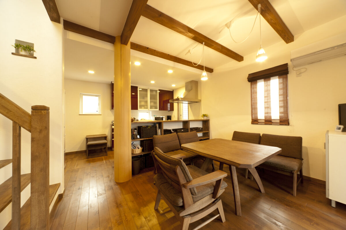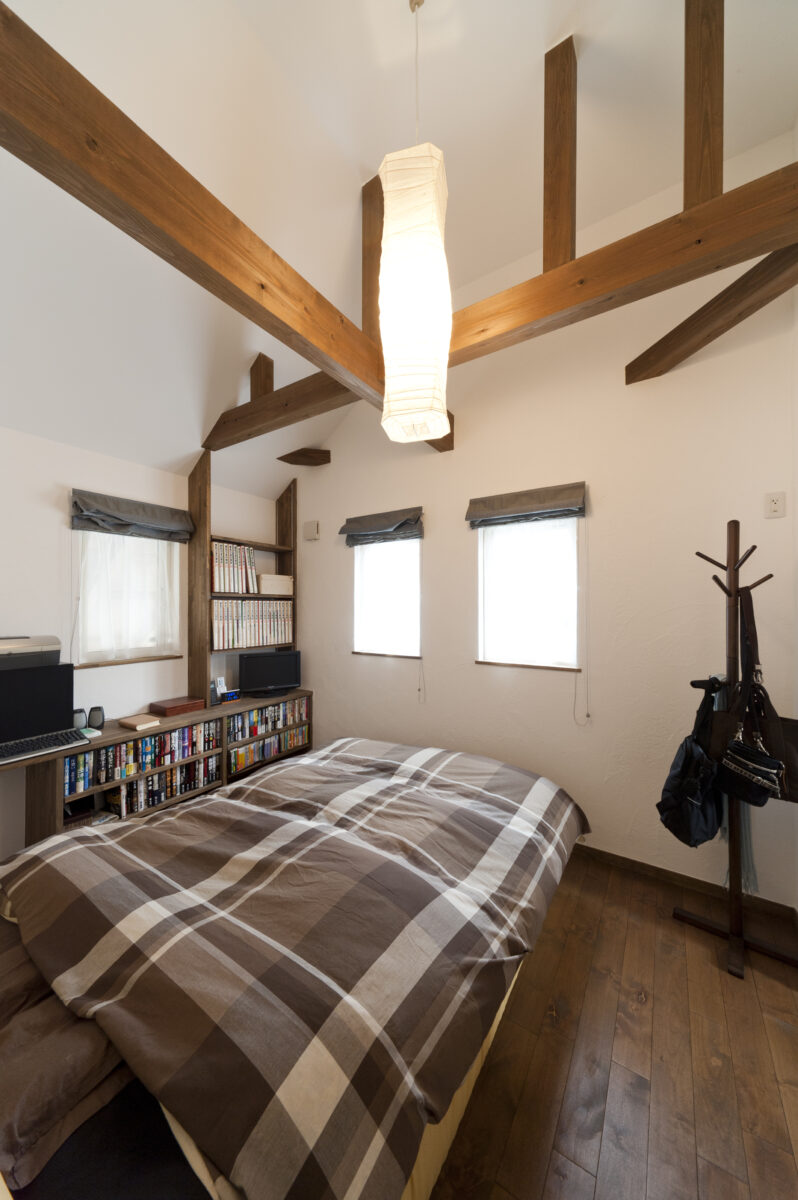 LDや寝室では梁や桁、火打ちなどが木の味わいを感じさせ