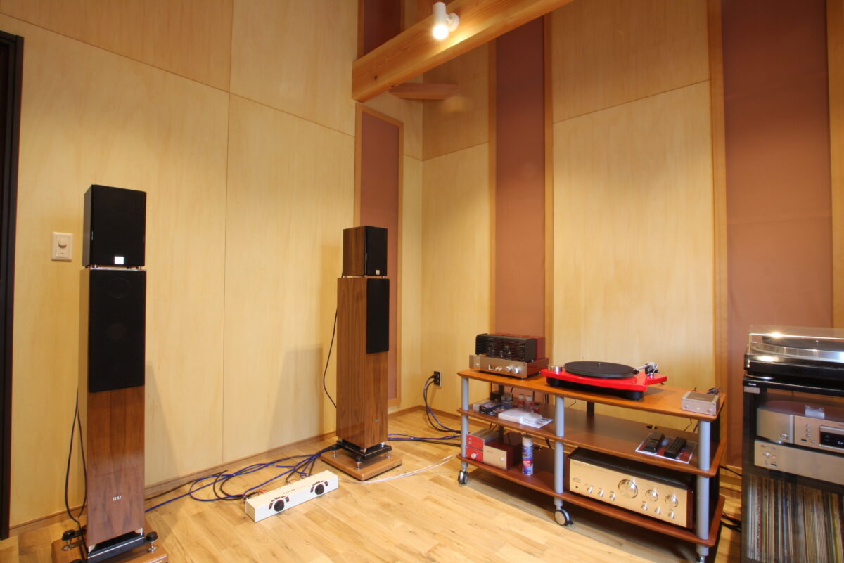 防音工事と吸音加工に加えて天井も勾配させ、音の響きにこだわっています。